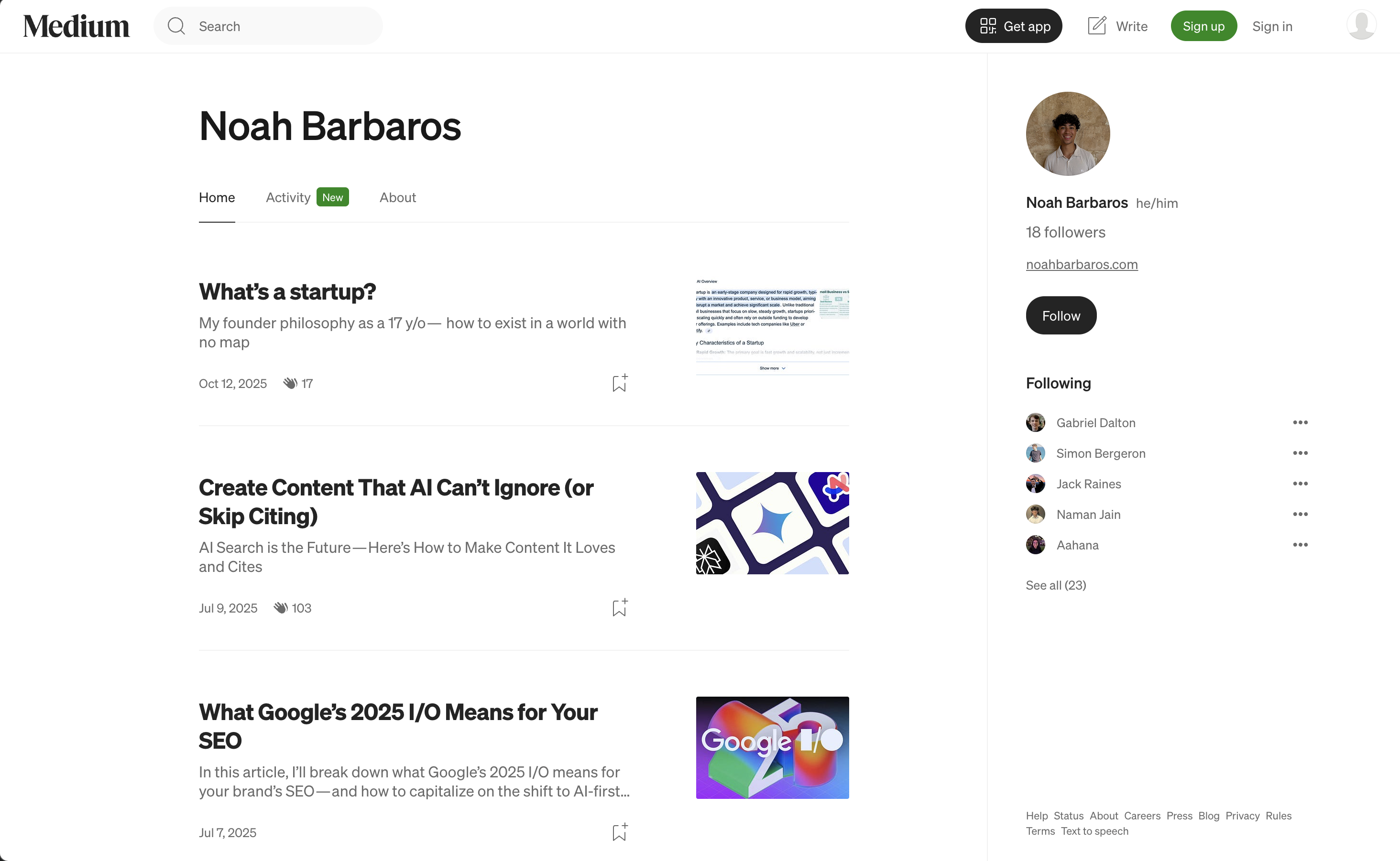 When I write, it'll likely be on my Substack, 0 to 0.1. I also occasionally write on Medium.